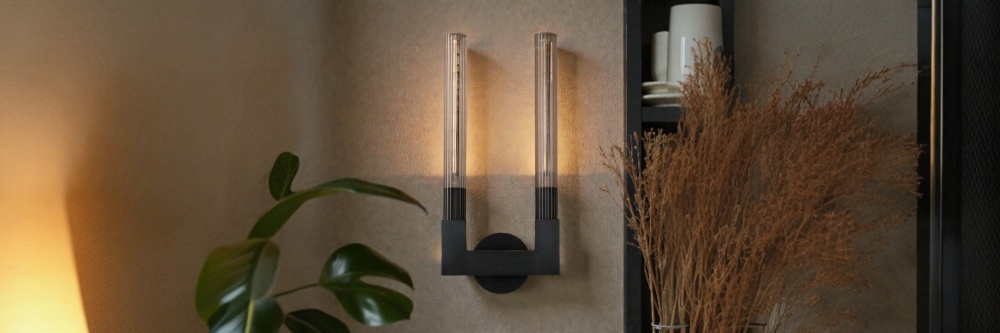 Светильники RH Cannele напоминают античные факелы или величественные подсвечники, переосмысленные в духе индустриального лофта и арт-деко. Рифленая поверхность стекла вызывает ассоциации с классическими колоннами (каннелюрами), что придает коллекции архитектурную стройность.