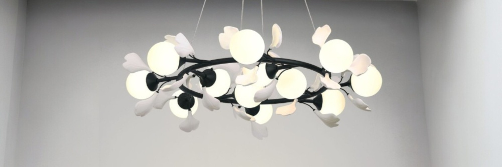 - Формы: Главная особенность серии — плафоны в форме шаров и изящные изгибы, напоминающие стебли растений или ветви деревьев, на которых распускаются бутоны. Коллекция включает разнообразные подвесные люстры с разным количеством плафонов (например, 9 или 12), что позволяет подобрать решение как для небольших, так и для просторных помещений.