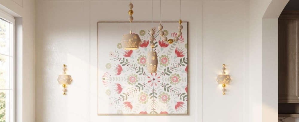 - Формы: Дизайну свойственна строгая геометрия в сочетании с природной текучестью. Удлиненные цилиндрические плафоны и каскадные композиции подчеркивают вертикаль пространства, добавляя интерьеру стройности и визуальной легкости.