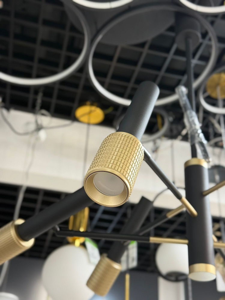 на плафоне каждого светильника, у торшера