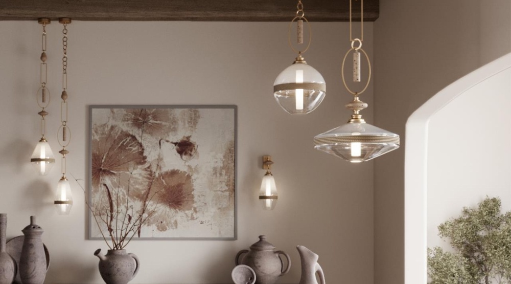 Особую прелесть коллекции придают натуральные материалы – элементы из травертина кремового оттенка сочетаются с декоративными цепями, создавая эффект драгоценного украшения. Стеклянные плафоны с деликатным дымчатым эффектом дополнены натуральной джутовой нитью, что придает светильникам природную теплоту и экологичность.