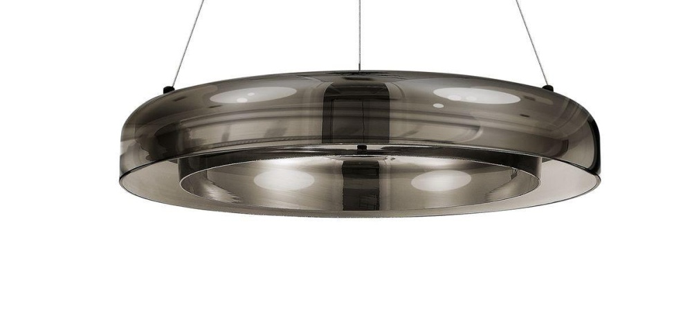 Стильная минималистичная коллекция Foray от ST Luce. Дымчатое стекло в сочетании с гальванизированными плафонами на тонких тросах, которые создают впечатление парящих светильников.
