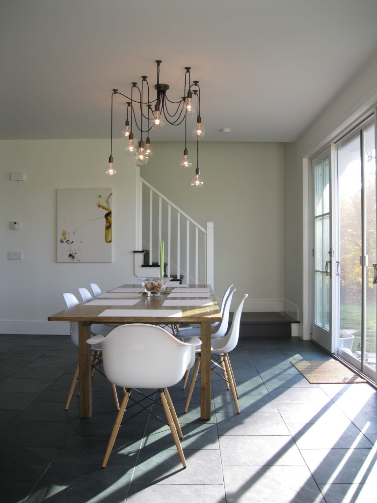 Лофт — стиль крайностей: можно выбрать одну большую люстру или много маленьких, тусклые отдельные лампы или яркие «букеты» ламп, создающие контраст и драматургию света.