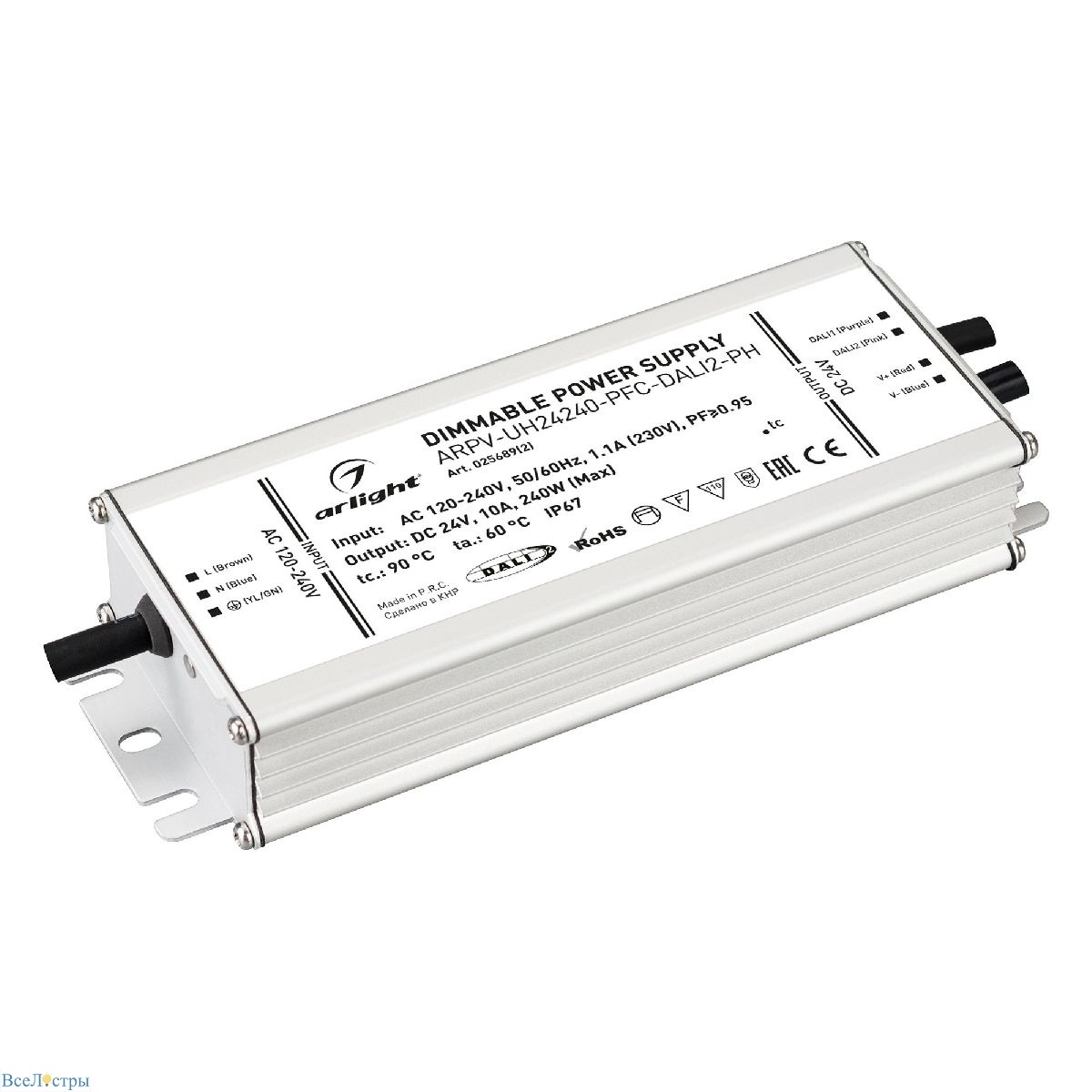 Блок питания Arlight ARPV-UH24240-PFC-DALI2-PH (24V, 10.0A, 240W, IP67) 025689(2) - профессиональное решение для мощных светодиодных систем с защитой от влаги.