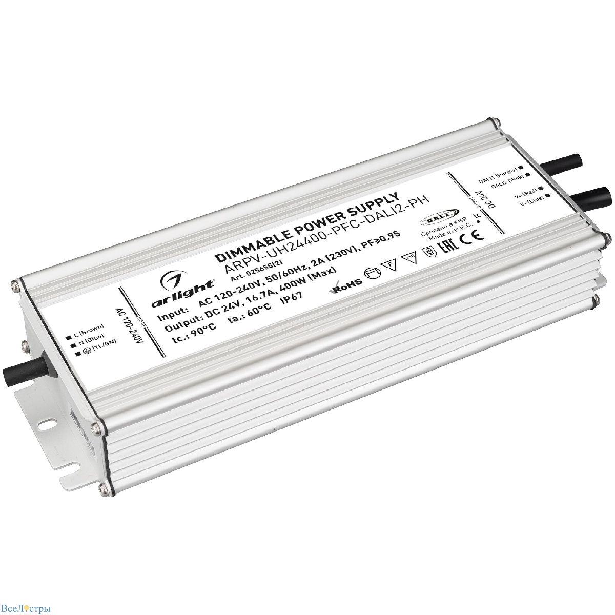 Профессиональный источник питания 400W с защитой IP67 и поддержкой протокола DALI2. Предназначен для питания мощных светодиодных систем в коммерческих и промышленных помещениях. Особенности: активная коррекция мощности, защита от перегрузки, встроенный вентилятор с терморегуляцией. Рекомендуется для систем освещения торговых центров, складов и производственных помещений.