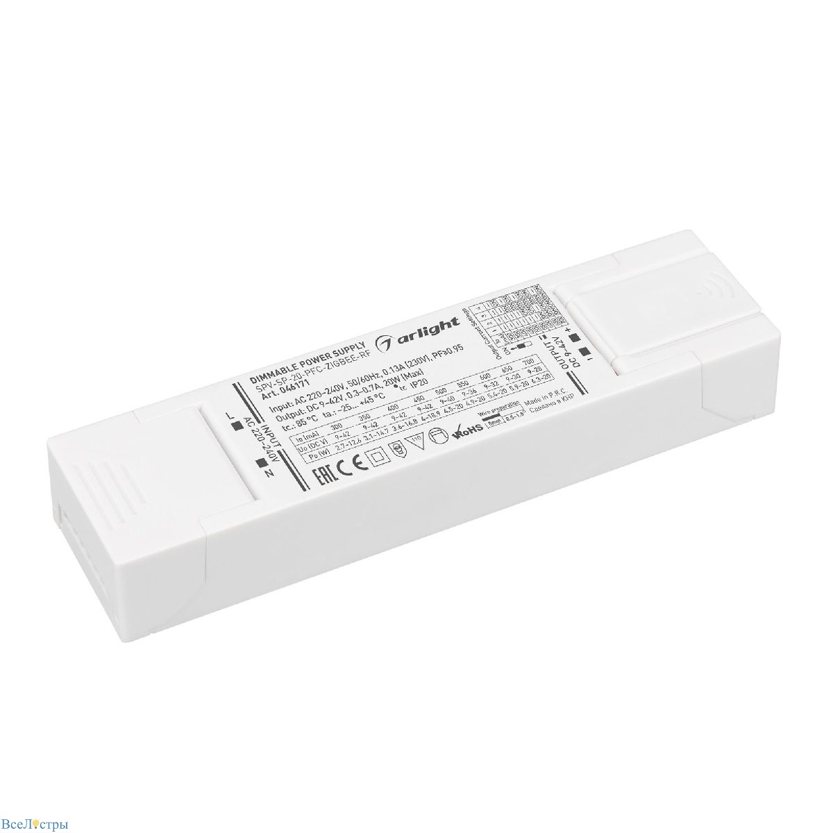 Интеллектуальный блок питания 20W с поддержкой Zigbee (2.4GHz). Особенности: совместимость с системами умного дома, активная коррекция мощности, защита от перегрузки. Идеально подходит для создания интегрированных систем освещения с дистанционным управлением. Рекомендуется для использования в умных домах и коммерческих помещениях.