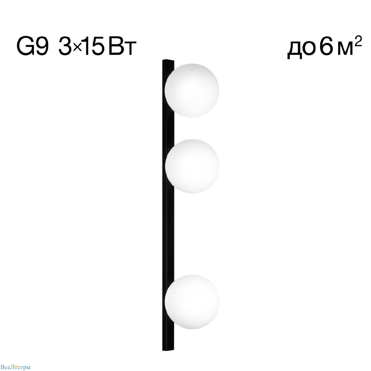 В изделии 3 лампы с цоколем G9 максимальной мощностью для светодиодных ламп 15Вт (в комплект не входят, приобретаются отдельно). Для равномерного свечения плафона рекомендуем использовать LED лампы с матовой колбой.