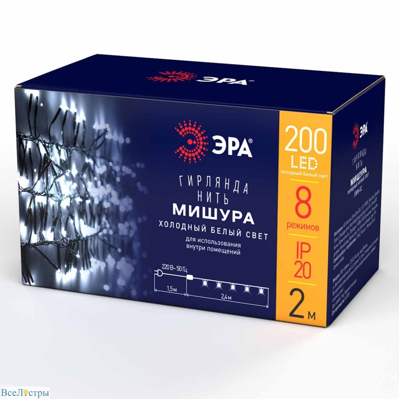 Гирлянда мишура ЭРА ENIN - GC излучает чистый холодный белый свет, который мгновенно преображает интерьер. Идеальна для оформления дома, офиса или витрины, создавая атмосферу свежести и современности. Длинные тонкие нити красиво спадают, обрамляя пространство мягким сиянием, словно зимний морозный узор на стекле. Она прекрасно подходит для праздничного декора или акцентного освещения в минималистичных интерьерах. Лёгкая и гибкая конструкция позволяет легко формировать любые композиции, создавая эффект дизайнерского света.