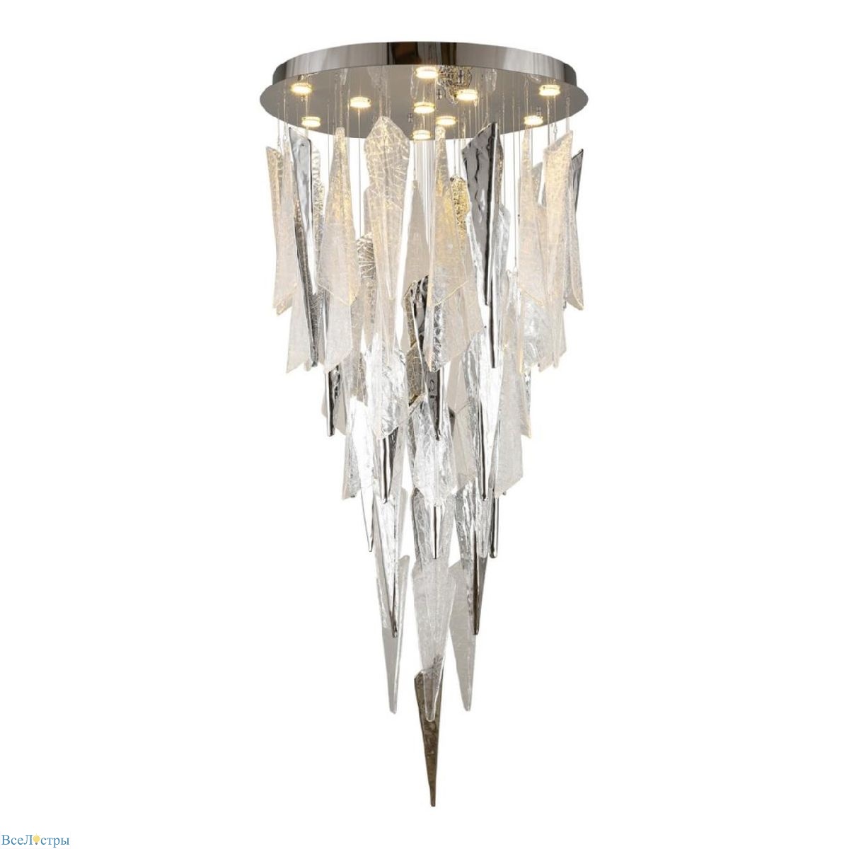 Коллекция Teresa и Каскадная люстра Aployt Teresa APL.855.16.10 польского производителя Aployt разработана для интерьера гостиной в стиле модерн. Осветительный прибор крепится к планке. Каскадная люстра Aployt TERESA весит 60 кг. Арматура цвета хром выполнена из металла, декоративный плафон направленный вниз, произведен из стекла.