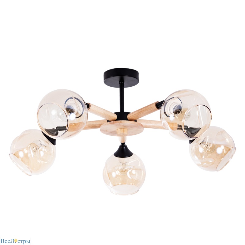 Бетон в люстре — ход смелый, но у Branson он работает. Матовый серый абажур и металлическая арматура цвета старой бронзы создают неожиданный сплав фактур. Это не грубый лофт, а скорее его современное прочтение для гостиной или кухни-гостиной. Штанга позволяет повесить не низко, световой поток от пяти ламп (цоколь E14) получается мощный, но рассеянное свечение смягчает геометрию. Важный нюанс: плафоны открыты снизу, поэтому даже с матовыми лампами легкий блик на потолок пойдет. Хорошо зонирует пространство над обеденным столом, если расположить по центру.