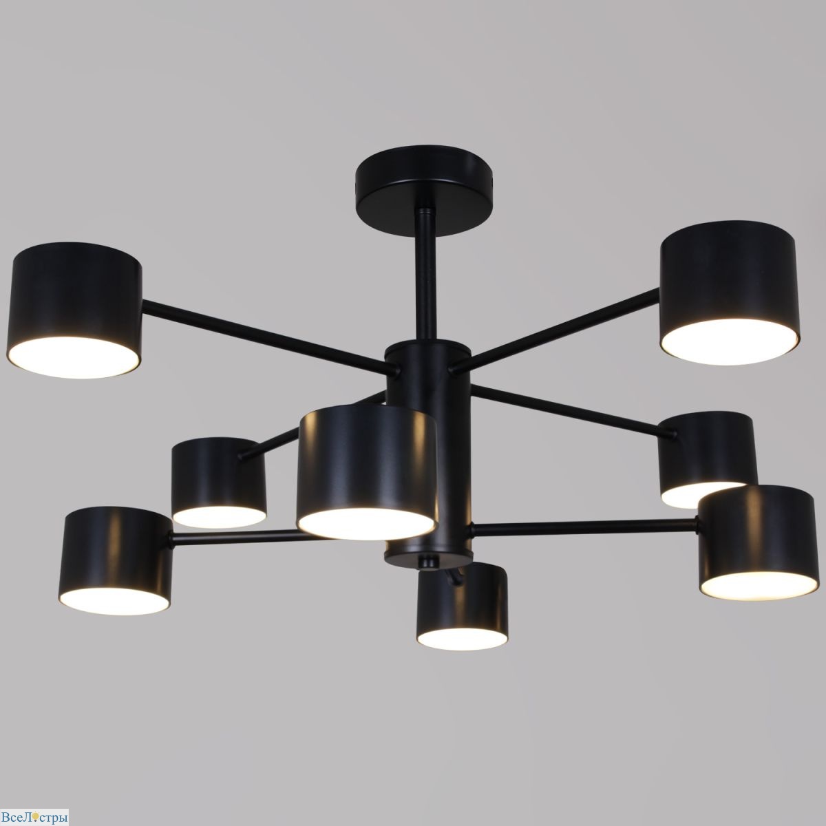 Эта черная люстра на штанге с тремя рожками увеличенной мощности создает выразительный световой акцент в интерьере. Строгая геометрия и темный цвет корпуса делают ее идеальным выбором для стилей лофт, индастриал или современная эклектика.