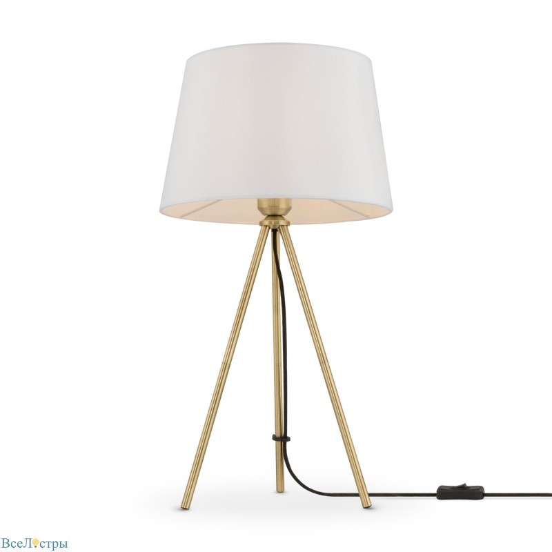 Настольная лампа Freya Sandy с основанием из полированной латуни и белым текстильным абажуром. Классическая форма для рабочего стола или прикроватной тумбы.