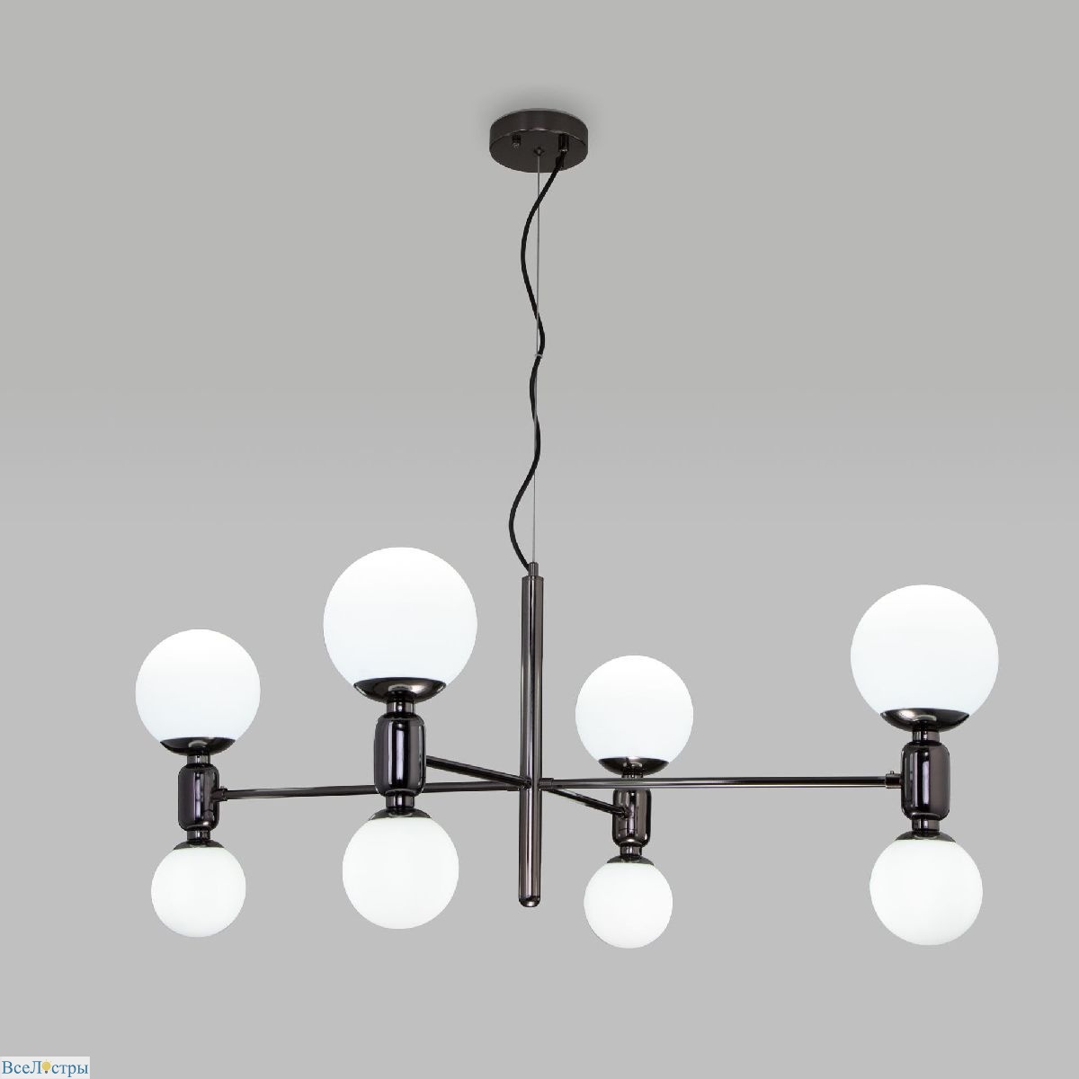 Подвесная люстра Eurosvet Bubble 30182/8 в оттенке черного жемчуга — это гармония таинственности и современного дизайна. Восемь источников света мягко рассеивают свет, создавая драматическое, но уютное освещение. Черный жемчуг придаёт интерьеру глубину и утонченность, идеально подходя для гостиной, столовой или зоны отдыха. Bubble — это не просто функциональный светильник, а дизайнерский акцент, который добавляет пространству характер и атмосферу. Его уникальная форма и цвет делают люстру настоящим произведением искусства, способным преобразить любое помещение.