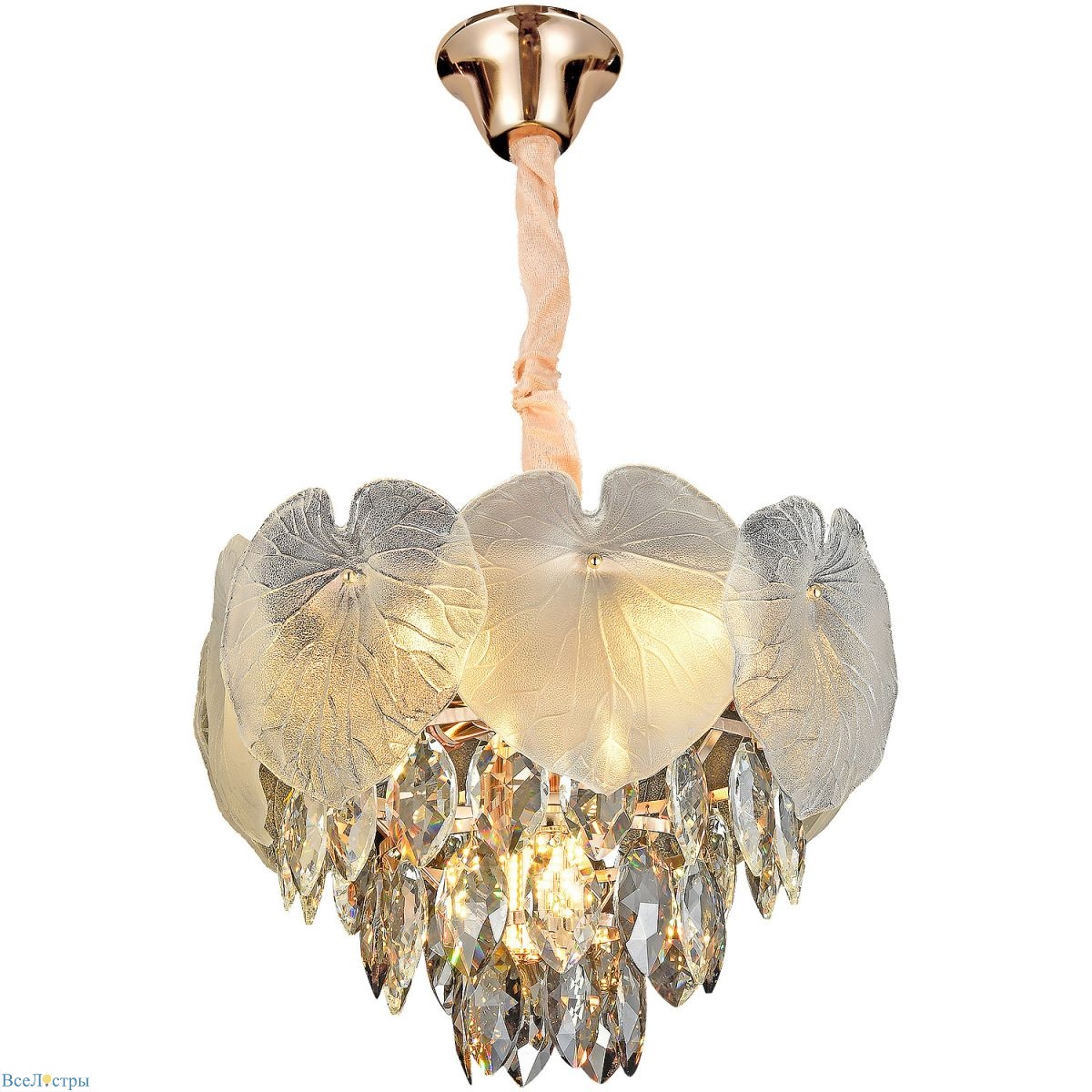 Подвесная люстра, наполняющая пространство мягким золотистым светом.