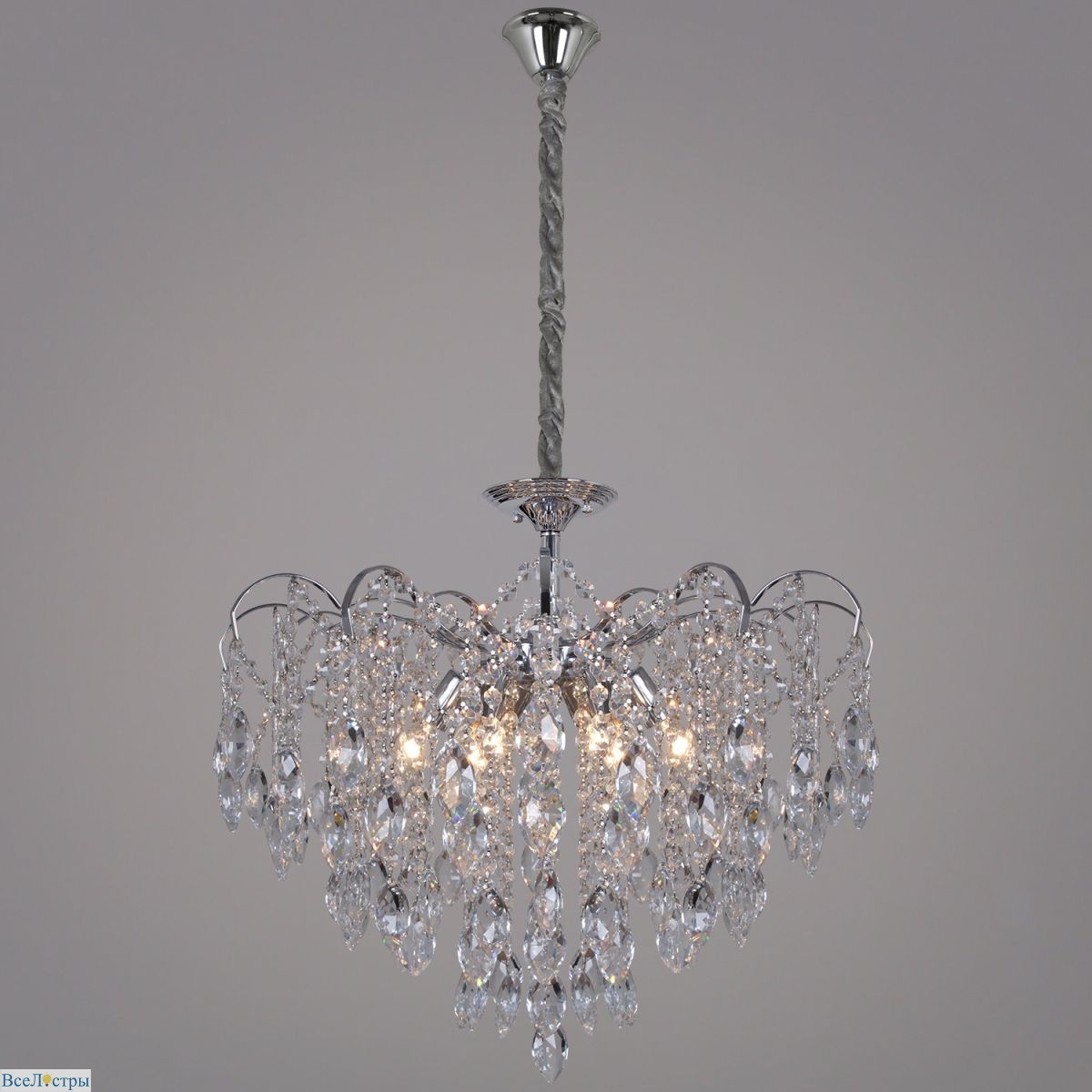 Эта люстра с открытыми рожками на хромированном основании представляет собой современную интерпретацию классической подвесной модели. Четыре источника света создают динамичную композицию, наполняя помещение живым, искрящимся светом.