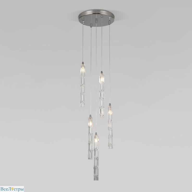 Подвесной светильник Eurosvet Lynn 50381/5 хром — это гармония современного дизайна и функциональности. Хромированная отделка придает светильнику блеск и современный шик, делая его центром внимания в любой комнате. Пять плафонов обеспечивают равномерное освещение, создавая атмосферу комфорта и стиля. Lynn станет ярким акцентом над обеденным столом, в гостиной или холле, добавляя интерьеру завершенность и утонченность. Дизайн светильника сочетает строгие линии с плавными формами, создавая динамику и легкость. Он идеально подходит для современных интерьеров, где ценят чистые линии, блеск металла и функциональность. Подвесной светильник Lynn — это свет, который формирует настроение, подчеркивает эстетику и создает уют.