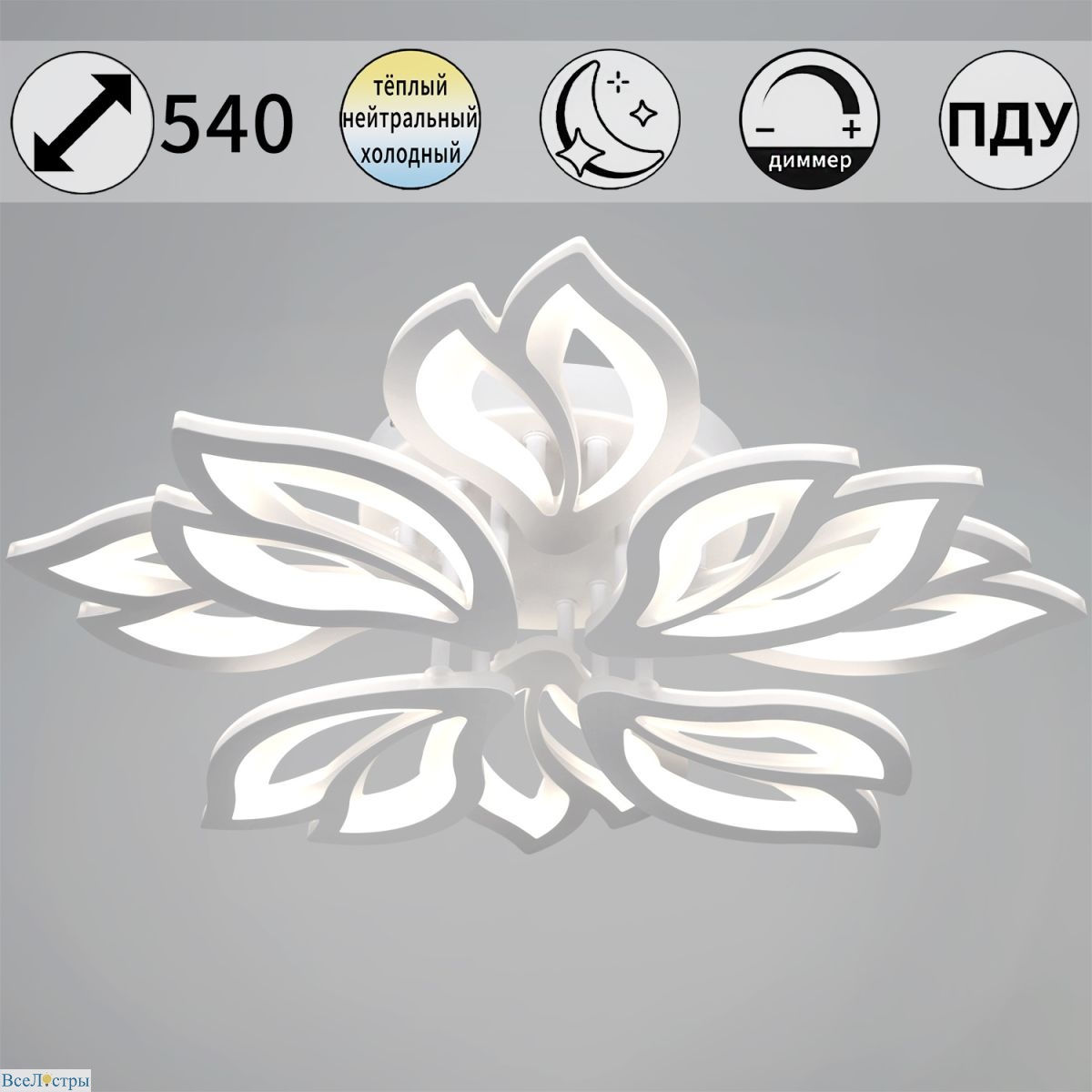 Четыре идентичных плафона, закрепленные на общем основании, формируют четкий, графичный образ. Архитектура этого светильника подчинена идее порядка и симметрии, что делает его выразительным акцентом в интерьерах минимализм и хай-тек. Белая матовая поверхность корпуса рассеивает свет, создавая мягкое и равномерное освещение, которое не утомляет глаза. Благодаря такому подходу люстра одинаково хорошо подходит для освещения кухни-гостиной или просторного холла. Модель работает с лампами E14, позволяя подобрать нужную цветовую температуру.