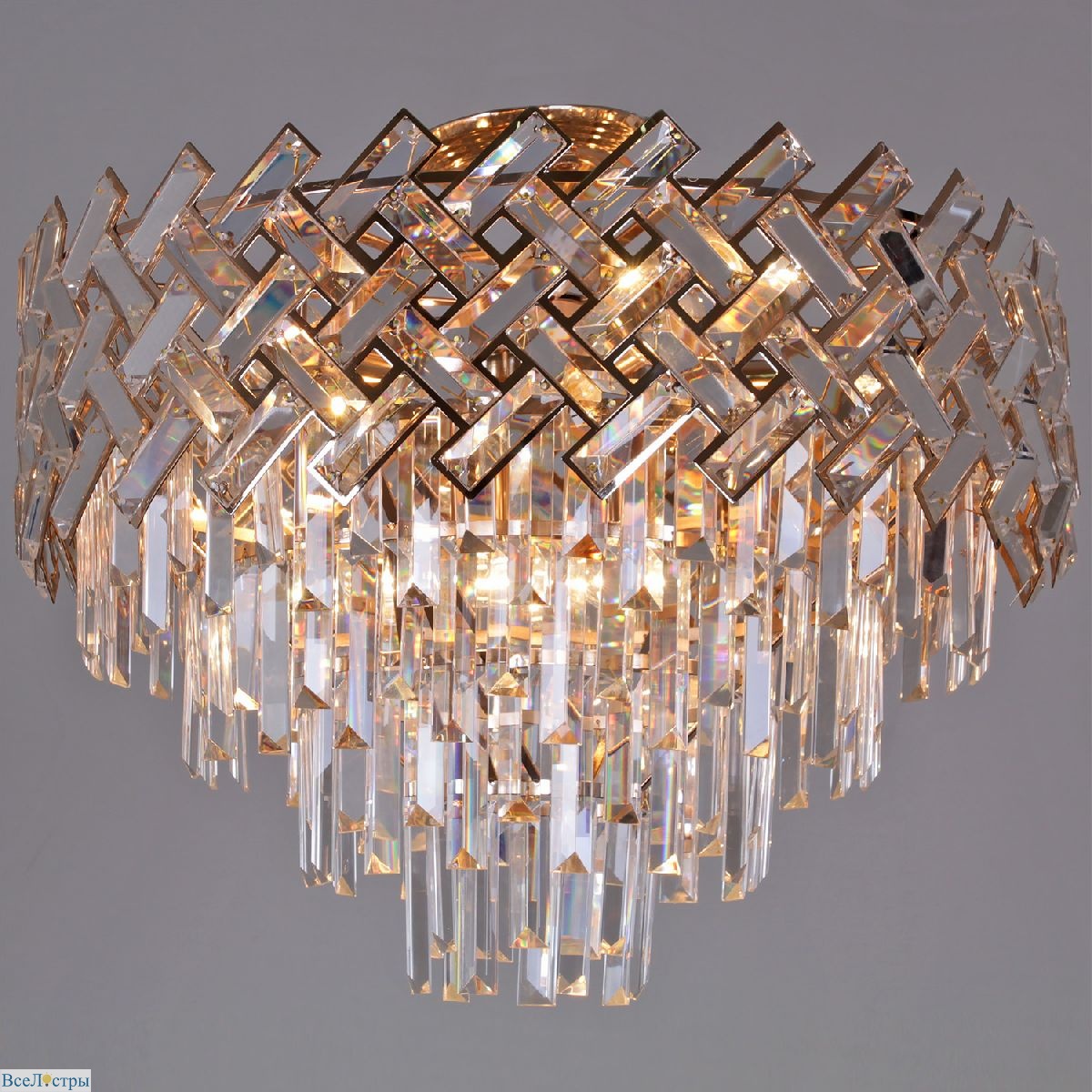 Потолочная люстра Reluce 09108-3.4-09 — многоуровневая композиция из стекла и металла для просторных помещений.