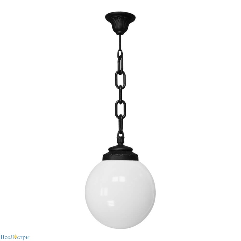 Светильник Fumagalli Sichem/G250 G25.120.000.AYE27: Черный ретро-подвес с белым плафоном для мягкого освещения входов и зон отдыха.