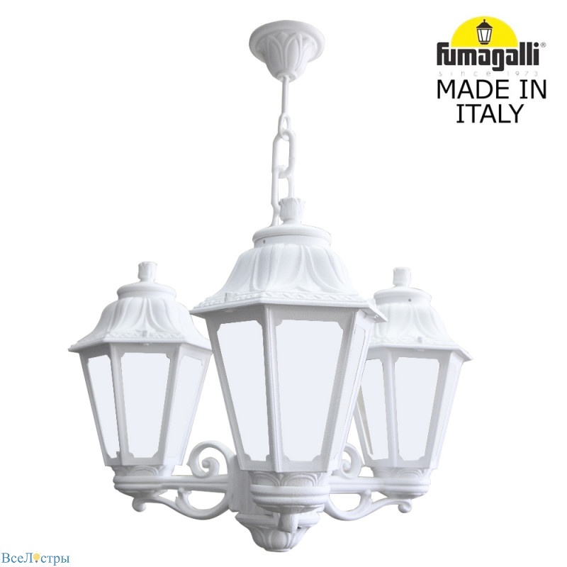 Нежный рассеянный свет для вашего отдыха – подвесной светильник Fumagalli E22.120.S30.WYF1R. Белая пластиковая штанга (560 мм), три белых матовых пластиковых плафона. Лампы E27 по 60 Вт (180 Вт). Создает уютную и расслабляющую атмосферу на террасе, в беседке, на летней кухне. Регулировка высоты. Долговечная конструкция для наружного использования.