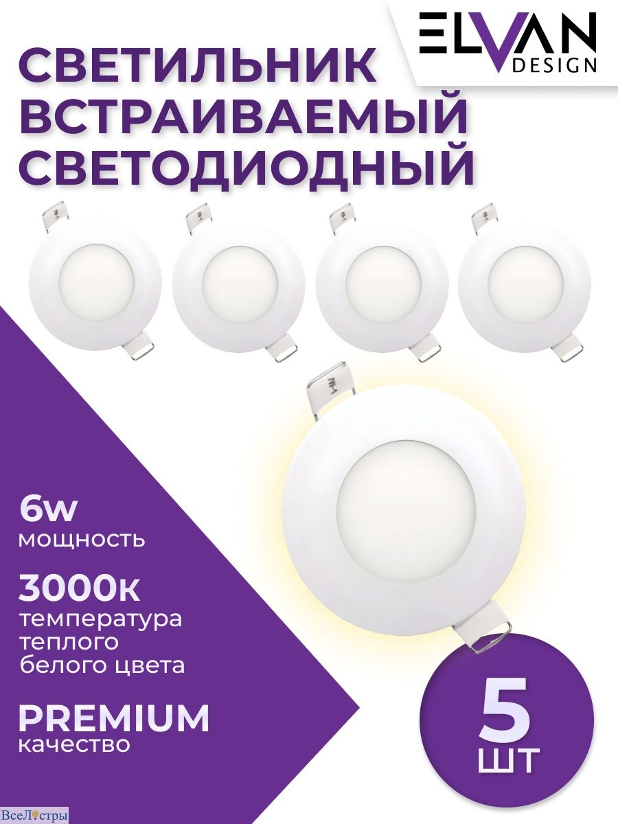 Отзывы про встраиваемый светильник (5 шт.) Elvan VLS-102R-6W-WW/5шт
