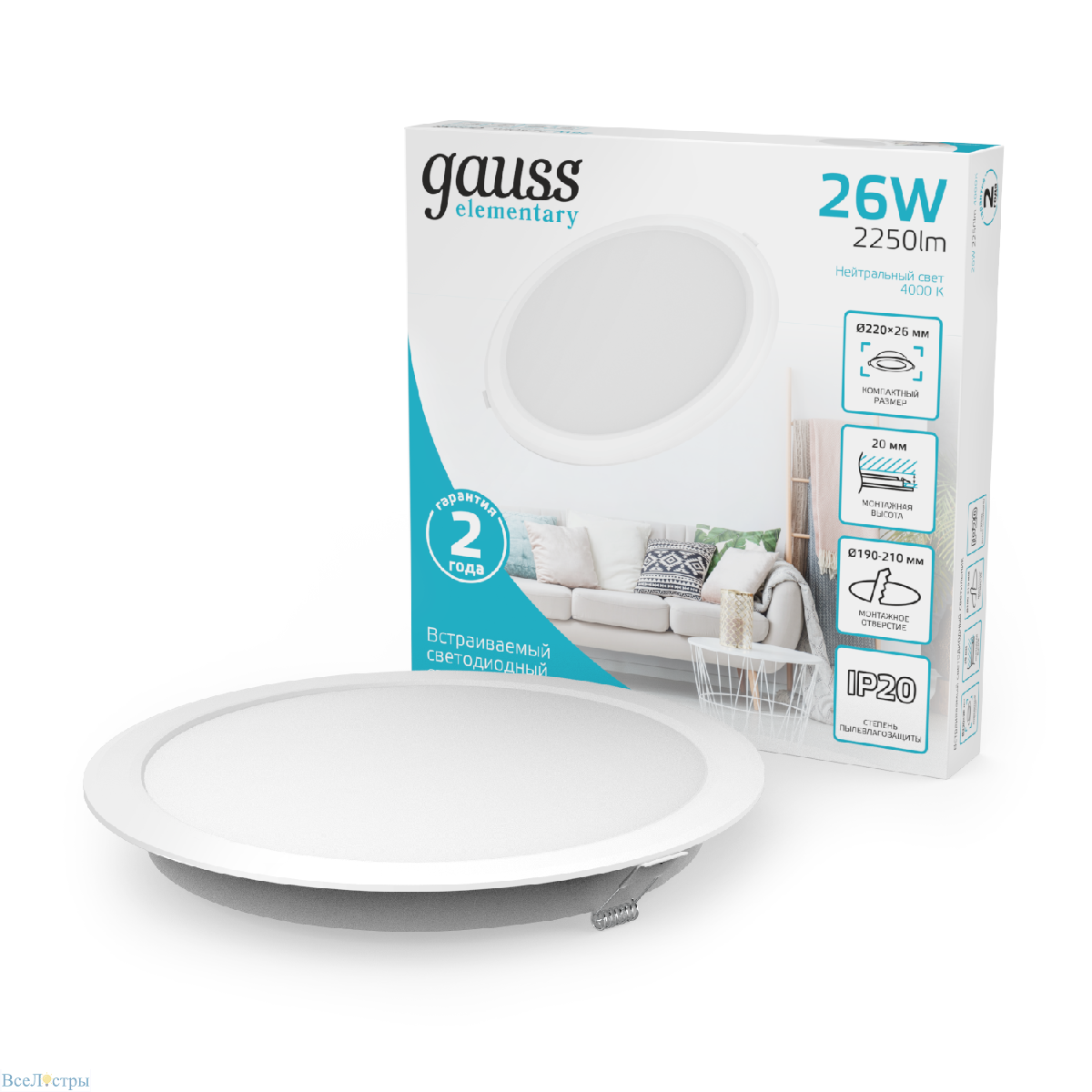 Отзывы про встраиваемый светильник Gauss Elementary Downlight 997520224